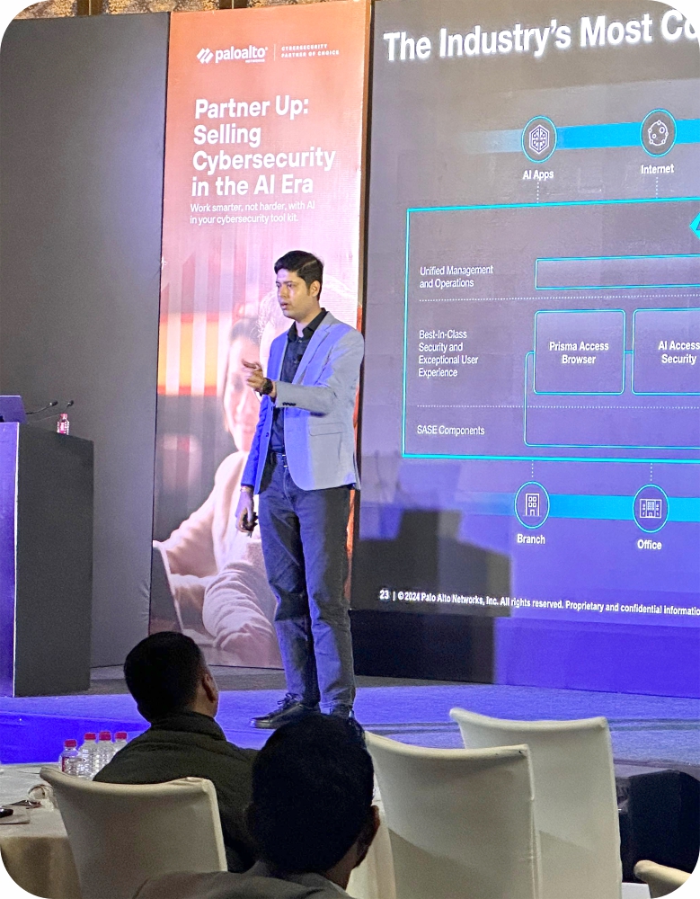 The day event saw an impressive lineup of Palo Alto Networks’ leadership team, including Abhinav Saxena, Senior Regional Sales Manager; Manu Jain, Partner Lead; Anirudh Sharma, Solutions Consultant, India; Rishi Raj Singh, Prisma Cloud Solutions Architect, India; and Vishwaroop Ganju, Account Manager. Their presence underscored the company’s commitment to strengthening relationships with its partners and enhancing cybersecurity solutions for the region.