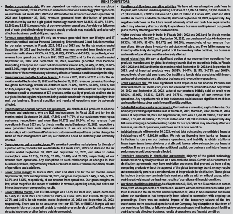 Rashi Peripherals Limited was incorporated in 1989. It is one of the fastest growing distribution partners for global technology brands in India in terms of revenue growth between Fiscal 2021 and Fiscal 2023, according to a Technopak report dated January 19, 2024 mentioned in the red herring prospectus dated January 29, 2024 (“RHP”, and such report, the “Technopak Report”). It differentiates itself by offering end-to-end value-added services such as pre-sale activities, solutions design, technical support, marketing services, credit solutions and warranty management services. As of September 30, 2023, it is a national distribution partner for 52 global technology brands.